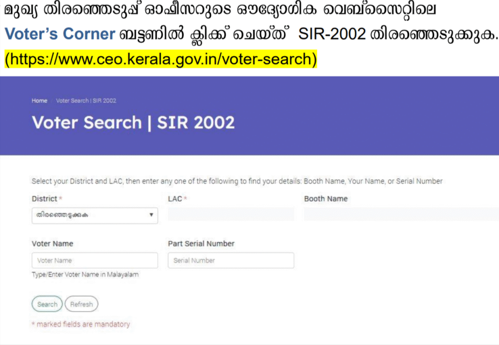 Voters List Kerala 2002 – SIR Old Electoral Roll