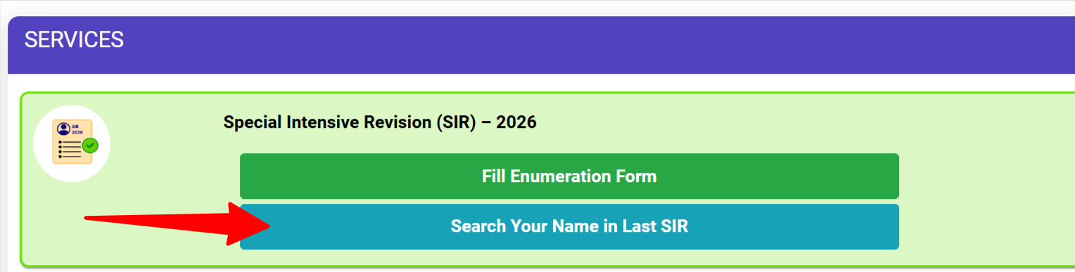 Step 2: At the home page of the website you have to click on “Special Intensive Revision (SIR) – 2026” under services section.